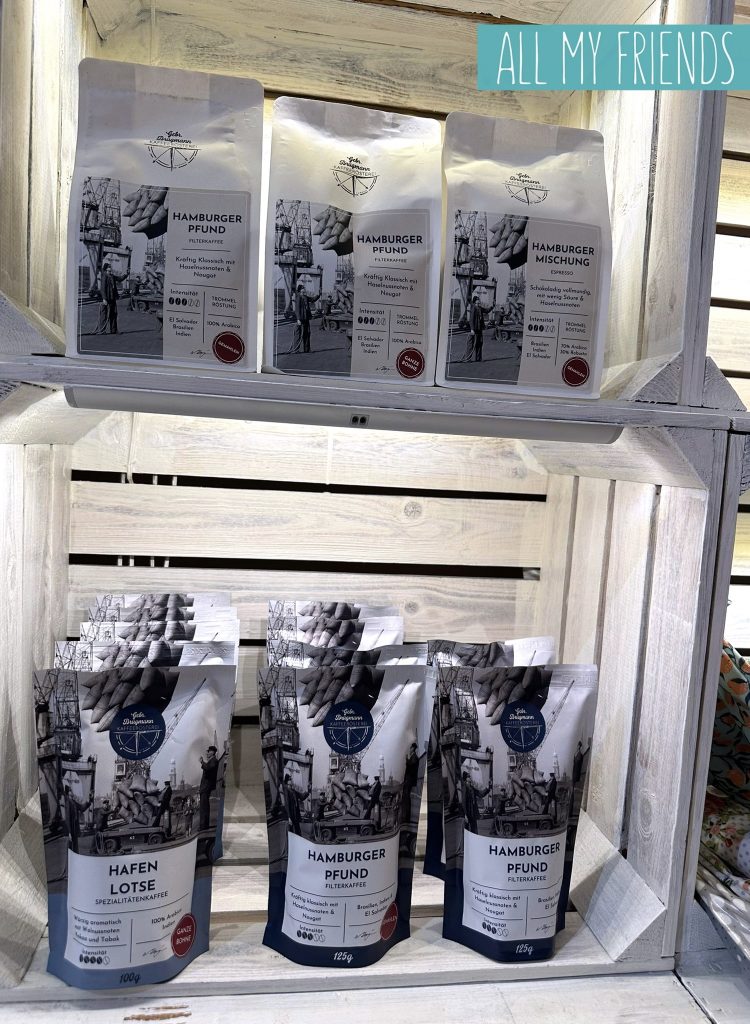 Die verschiedenen Kaffeesorten sind vor den Toren Hamburgs in einer lokalen Kaffe Rösterei nach Hamburger Tradition in der Trommel geröstet und dann mit unterschiedlichsten Aromen versehen.